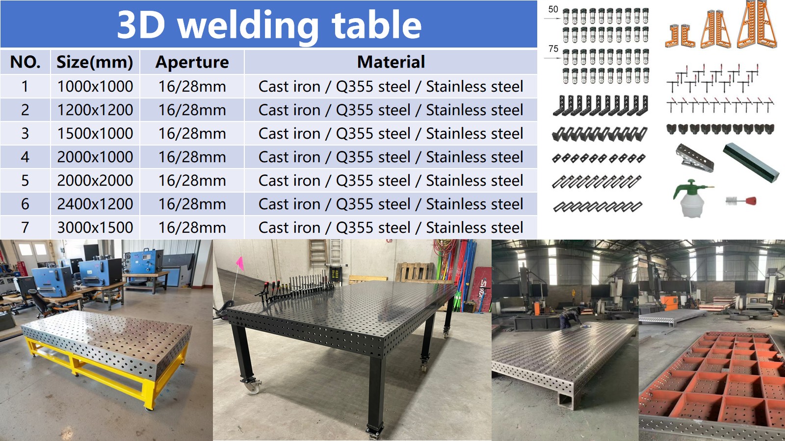 Kompatibilitas Aksesori Penting: Pin pemosisian, klem cepat, pengukur sudut, blok V, mangkuk pengisap magnetik, dll. (Pastikan bahwa posisi lubang di atas meja sesuai dengan spesifikasi aksesori untuk menghindari masalah pemasangan);